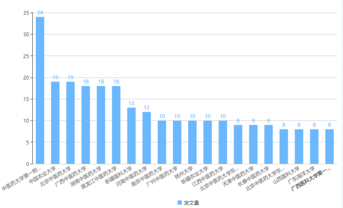 就文献发表单位分布情况而言,发表动物模型相关文献最多的单位包括中医药大学第一附属医院、中国农业大学、北京中医药大学、广西中医药大学等(图3)。