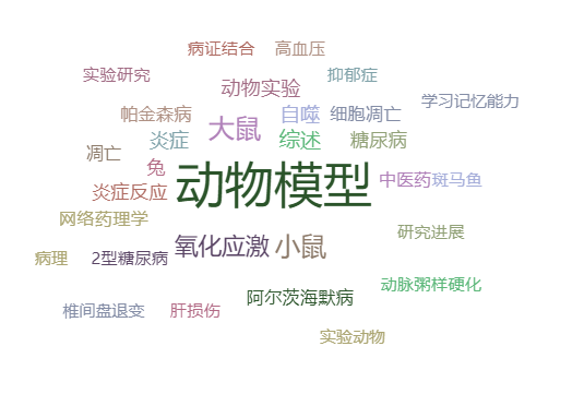 图1万方数据库中“动物模型”相关中文文献的关键词分布情况