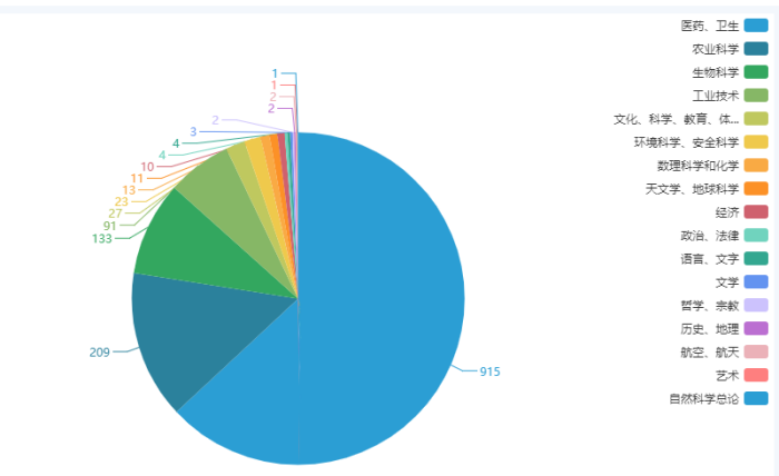就文献发表学科分布情况而言,发表动物模型相关文献最多的学科包括医药卫生、农业科学、生物科学、工业技术等(图4)。